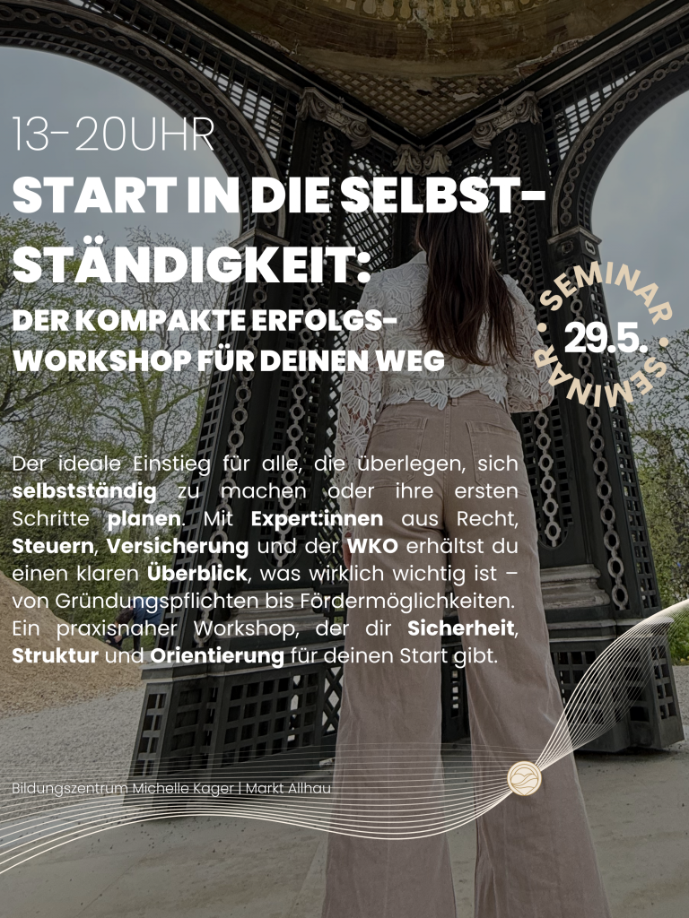 Der ideale Einstieg für alle, die überlegen, sich selbstständig zu machen oder ihre ersten Schritte planen. Mit Expert:innen aus Recht, Steuern, Versicherung und der WKO erhältst du einen klaren Überblick, was wirklich wichtig ist – von Gründungspflichten bis Fördermöglichkeiten.